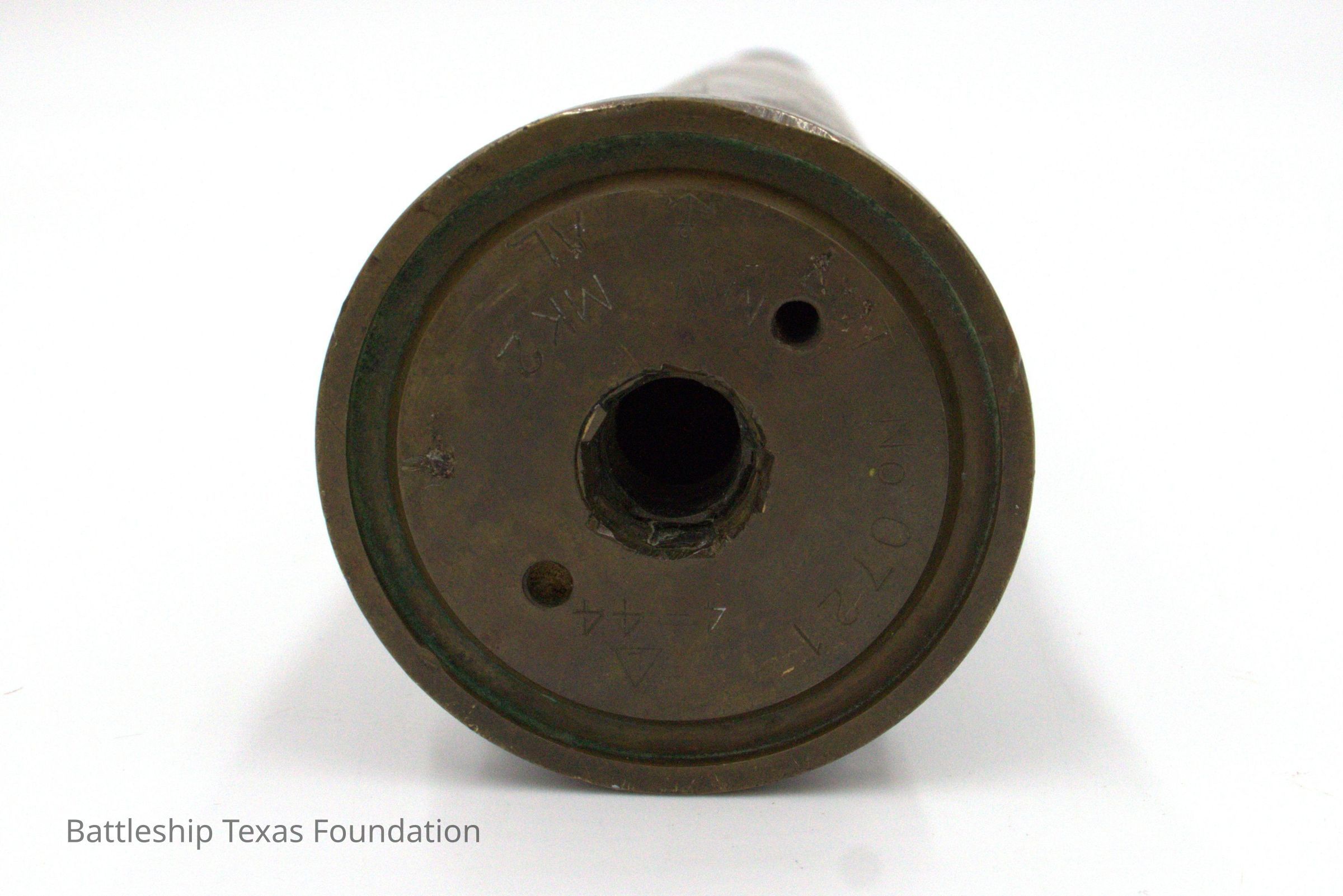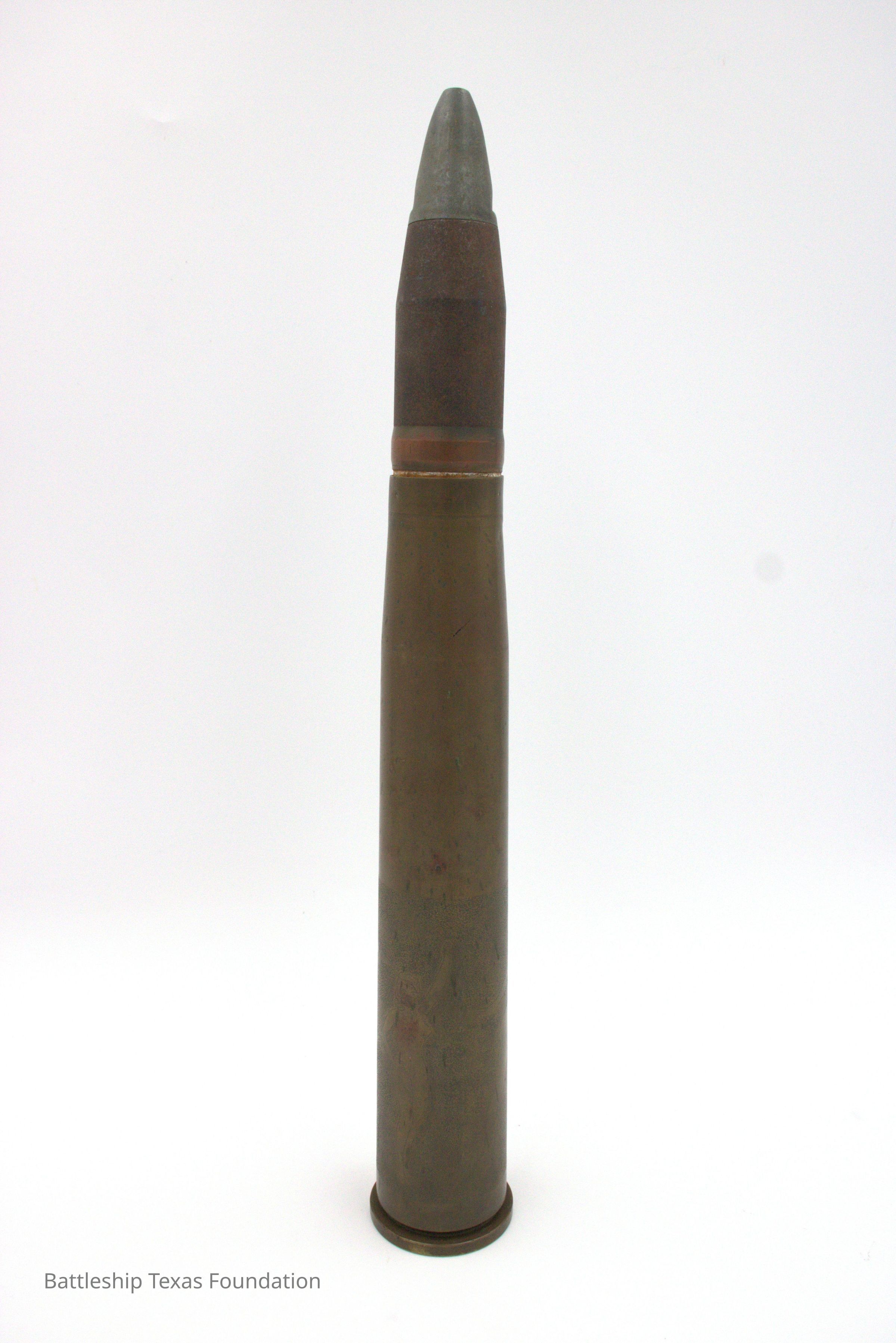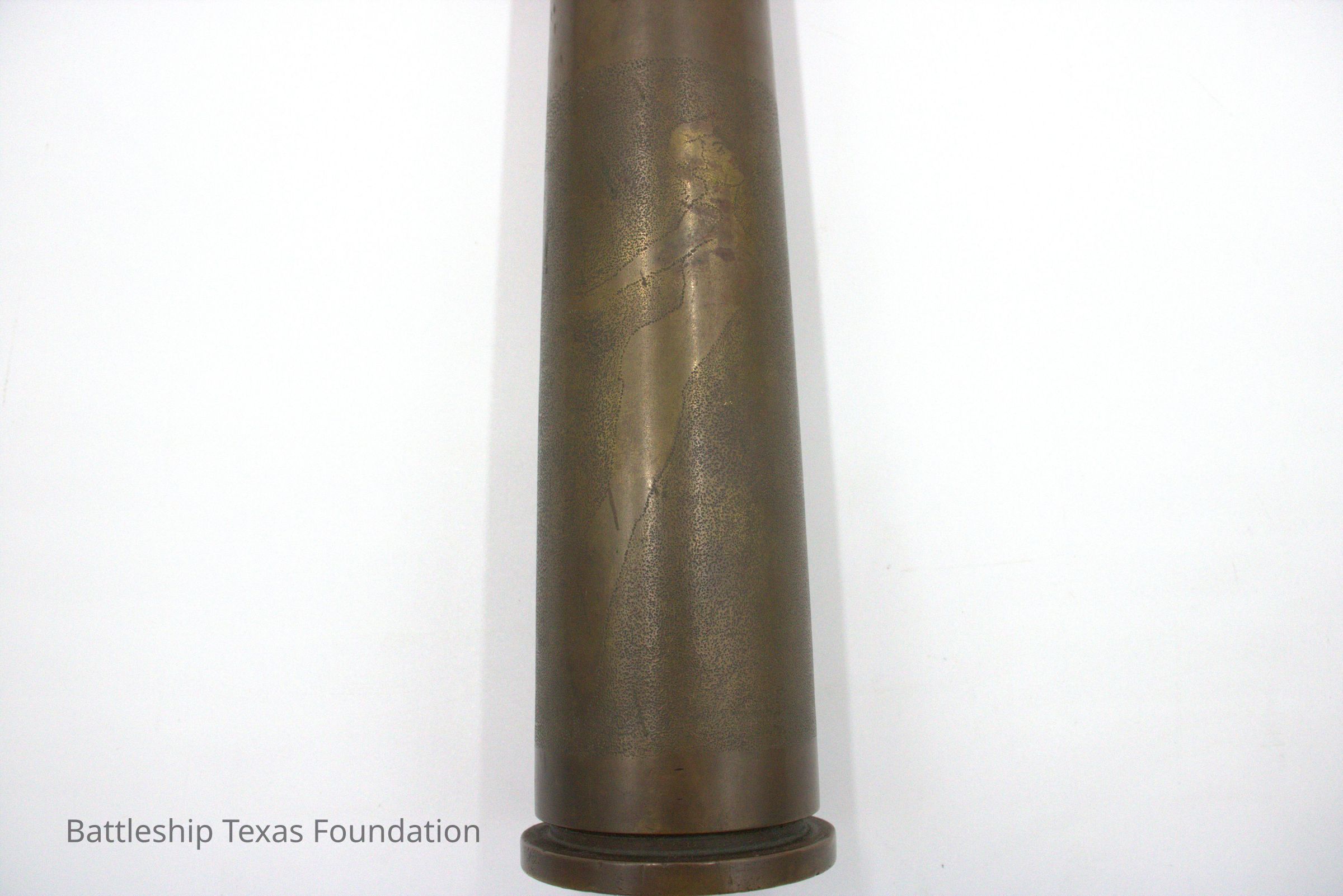 Servicemembers made sculptures most commonly from discarded ammunition shells of various calibers. The practice became popular during World War One and continued into World War Two. Shells could be reshaped, carved, etched, and soldered into myriad decorative objects. By the end of World War Two, Battleship Texas had forty 40mm Bofors. While this piece of art was not done on Texas, art like it was.