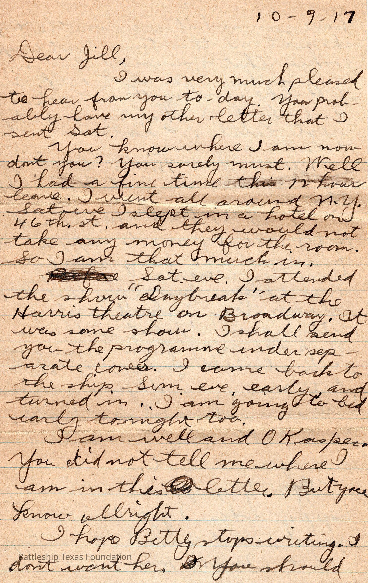 Dated 10-9-17 and addressed to Jill. back has "2" on center top.