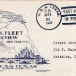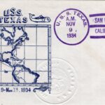 Many crew members spread their art throughout the ship and beyond to the homefront. Men on Texas sponsored and designed naval covers for envelopes in a practice that became heavily popularized in the 1930s. The trend was not unique to Texas, and widely featured throughout the entire fleet. Covers could encompass a wide variety of modes. Collage, small oil painting directly on the envelope, stickers or pasted on cutouts, and even just pen and pencil were common. The most common variant on Texas was block printing, using ink stamps to decorate many different envelopes and allowing a single design a wider audience. The practice was most popular on holidays and special events when and where the ship may be. Designs were typically monochromatic, where multiple colors often indicated a confluence of individual illustrations. Eric O. Tauer, Sidney N. Bremer, and Elmer J. Birdsall were amongst the more prolific designers and heavily feature on many envelopes donated to Battleship Texas Foundation. While they would again adorn the faces of envelopes following World War II, the war years saw a hiatus from the activity in lieu of more cost-effective methods of mail transportation which relegated envelopes unnecessary.
