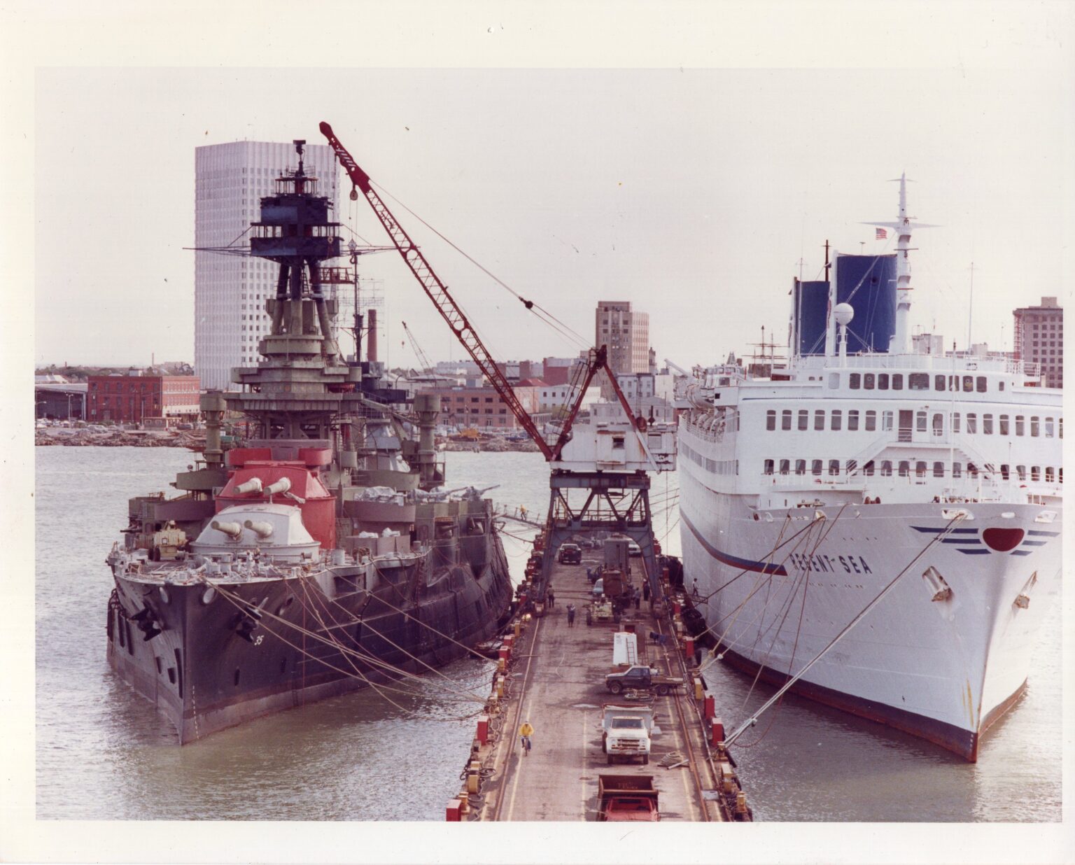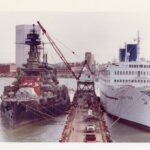 In the 1960s, The Battleship Texas Commission removed the ship’s original longleaf pine decking, and replaced it with concrete. While meant as a measure to ensure longevity, the acidic nature of the material proved more corrosive than beneficial. Nonetheless, many of the most iconic shots of Battleship Texas, taken by press and patrons, come from this period of preservation experimentation. Publications also saw widespread success, as many of these images made their way into popular pieces read by museum attendees and nationwide. A magazine owned by Peter Fiedler, the first captain of the guided-missile cruiser USS Texas (CGN-39), contained an article on the museum Texas, alongside the modern Texas, recently commissioned. Photograph and magazine both need storage in acid-free folders to preserve their quality.