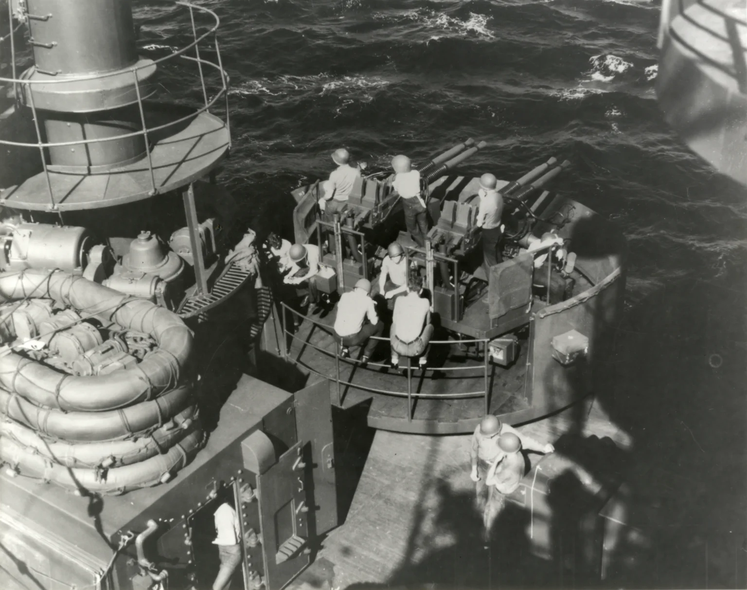 The gun tubs will likely be installed on the ship in early to mid-May, when we return other equipment aboard via crane. The 40 mm guns will be reinstalled in the future following their restoration at an off-site facility.
