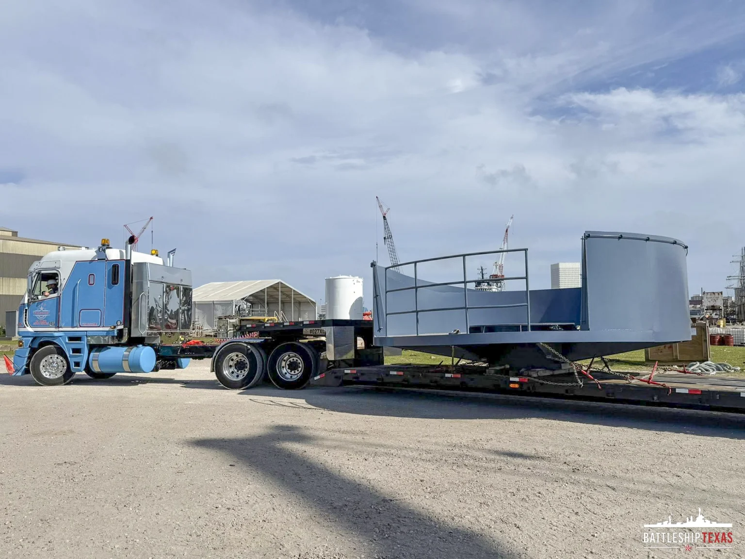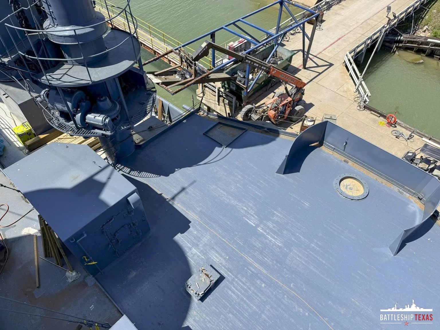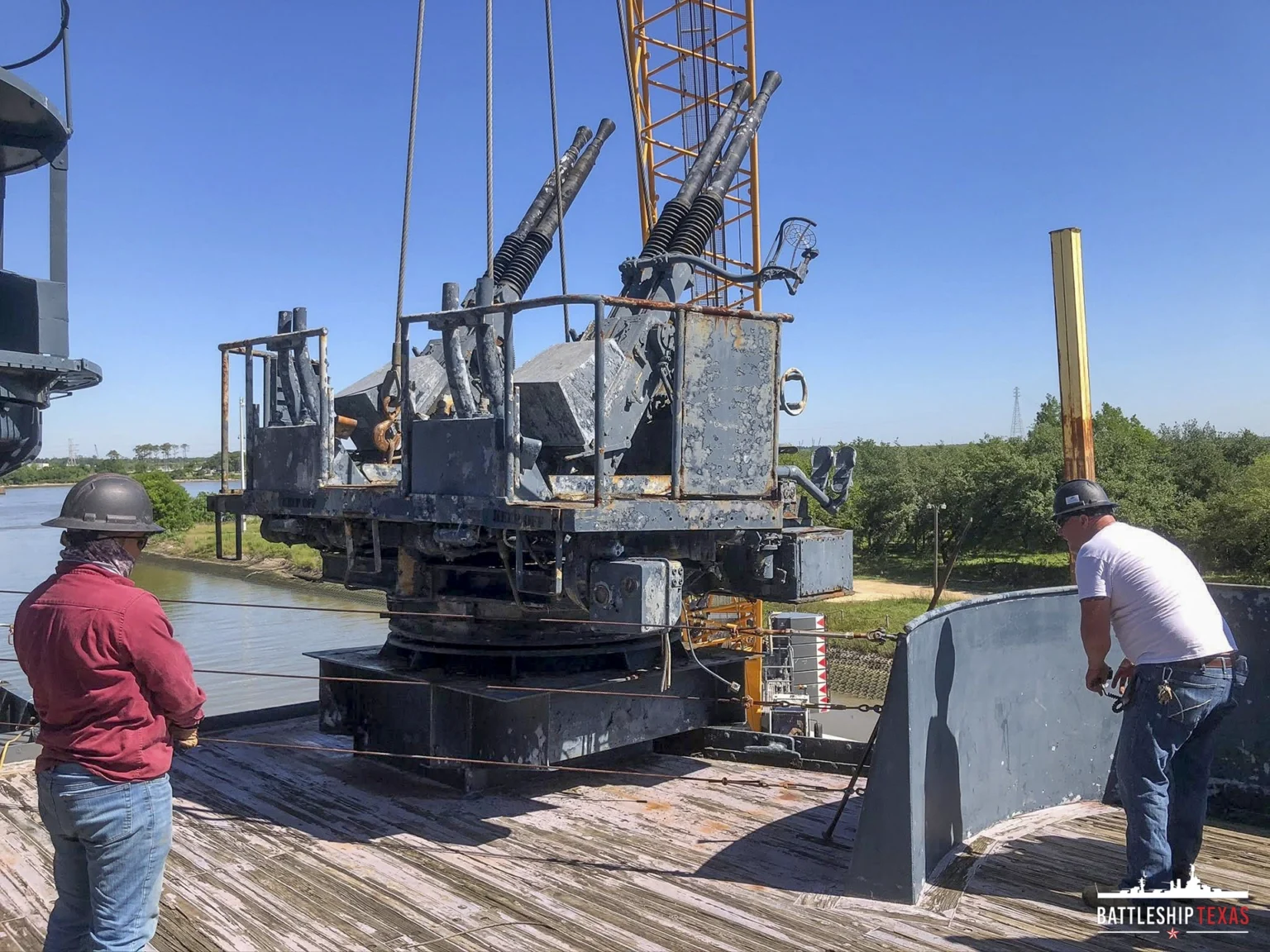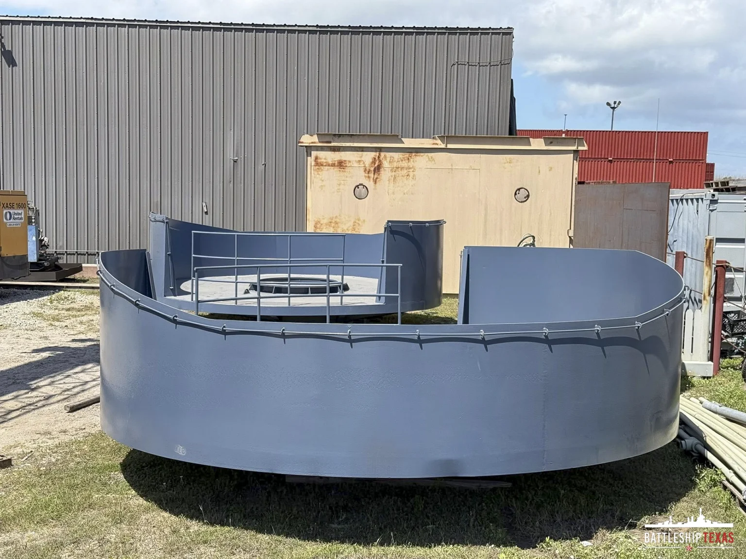 In late March 2026, we received two newly fabricated 40 mm gun tubs that had been removed from the ship before it became a museum in 1948. Certified Pipe Services Houston fabricated and painted these elevated tubs, generously donating their time and services.