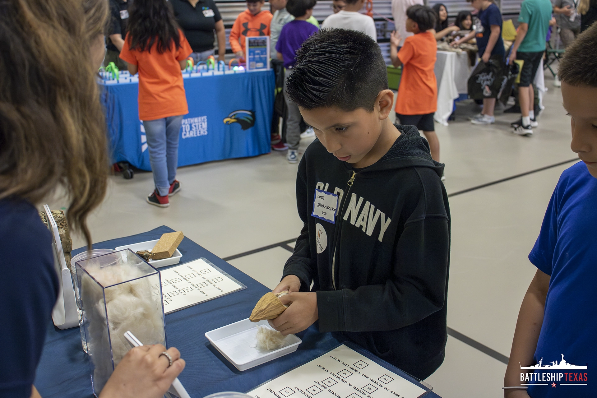 What material makes a good life jacket? Explore the Navy’s use of cork bark and kapok fibers from World War I to World War II in this interactive display. Participants will handle materials, explore their properties, and help the Navy decide on the best material for their life jackets!