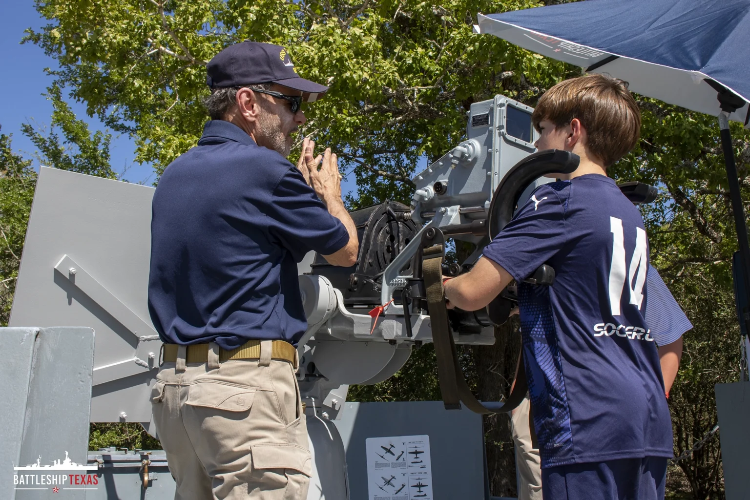 Find out what it takes to be an anti-aircraft gunner aboard Battleship Texas during WWII! Gear up and learn about the gun, the crew, and their mission to protect the vessel from potential air attacks. Accompanying the gun are interactive displays that explain how the crews identified if a plane was a friend or foe, how the gun was loaded and cared for, and the personal equipment worn by the crew.